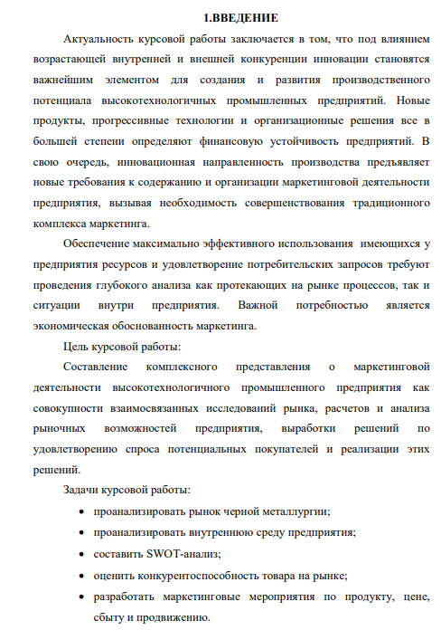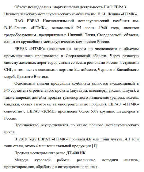 Курсовая работа по дисциплине «Маркетинг в инновационной сфере» на тему: «Формирование комплекса маркетинга на примере ПАО ЕВРАЗ Нижнетагильского металлургического комбината им. В. И. Ленина «НТМК»».