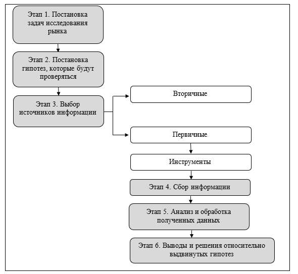 Рис. 1. Алгоритм исследования рынка для проектов Этап 1. Постановка задач исследования рынка