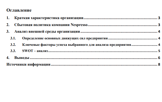 ДЗ: Домашняя работа (Сбытовая политика предприятия "Nestlé Nespresso S.A.")