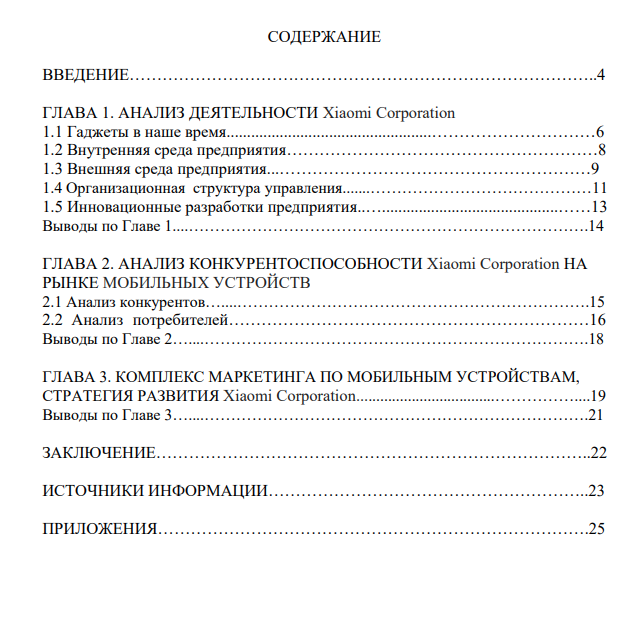 Целью данной курсовой работы является анализ товарной линейки крупного зарубежного предприятия, специализирующегося на мобильных устройствах, что повлияет на успех предприятия в будущем. Чтобы достичь поставленной цели, необходимо решить следующие задачи:  проанализировать рынок мобильных устройств;  выявить наиболее перспективную модель;  определить конкурентные силы в отрасли и степень их влияния на ход конкурентной борьбы;  выявить ключевые факторы успеха в конкурентной борьбе;  проанализировать стратегии конкурентов по продвижению перспективных аналогичных товаров;  сделать заключение и дать рекомендации. Объектом исследования является Xiaomi Corporation - одна из ведущих китайских компаний в сфере производства гаджетов. Предмет исследования – ассортимент товаров данной компании.