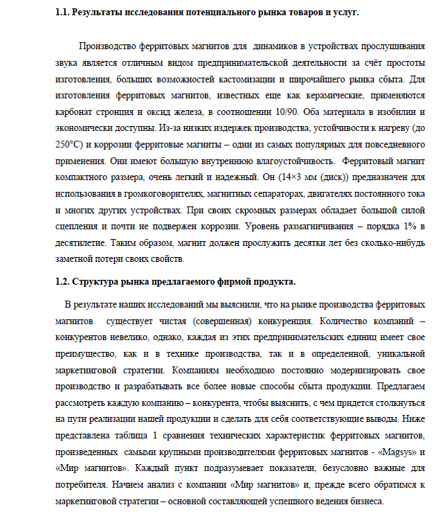 1.1. Результаты исследования потенциального рынка товаров и услуг