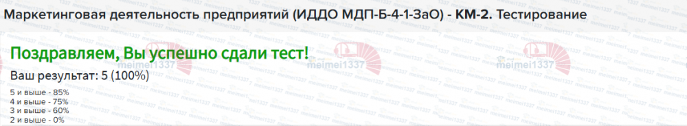 Для студентов ИДДО НИУ «МЭИ» по предмету Маркетинговая деятельность предприятийКМ-2. Тестирование - 100%КМ-2. Тестирование - 100%