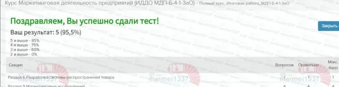 Курс Маркетинговая деятельность предприятий - база ответов к тестам: