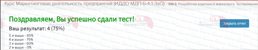 📝Помощь с тестом «КМ-3. Разработка комплекса маркетинга» по курсу «Маркетинговая деятельность предприятий» в ИДДО – гарантия результата!☑️