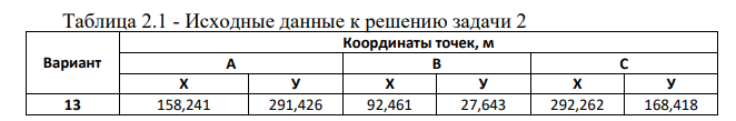 Цель работы: Освоить методику подготовки исходных данных для вынесения на местности точки «С» с известными координатами от пунктов А и В геодезического разбивочного обоснования.