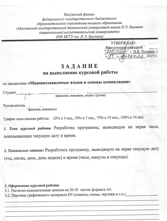 Для студентов МГТУ им. Н.Э.Баумана по предмету Машинно-зависимые языки и основы компиляцииРазработка программы, выводящей на экран часы, показывающие текущую дату и времяРазработка программы, выводящей на экран часы, показывающие текущую дату и время
