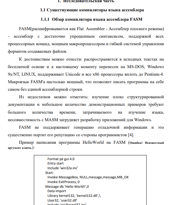 Для того чтобы компьютер мог выполнить команды пользователя на аппаратном уровне, необходимо сгенерировать определенную последовательность действий с помощью машинного кода. Машинный код – это совокупность команд конкретной электронной вычислительной машины, которая интерпретируется процессором [1]. Для удобства управления машинными кодами используются языки программирования низкого уровня. Язык ассемблера – это язык низкого уровня с командами, не всегда соответствующими командам машины, который позволяет обеспечить дополнительные возможности (макрокоманды). Ассемблер – это переводчик исходного текста программы, написанной на языке ассемблера, в программу на машинном коде[2]. В настоящее время можно выделить две области, в которых использование языка ассемблера оправдано и необходимо. 1. Машинно-зависимое системное программное обеспечение, которое обычно управляет устройствами компьютера. В этих программах используются особые машинные команды, которые нет необходимости применять в прикладных программах. 2. Оптимизация выполнения программ. Довольно часто компиляторы выдают вполне неэффективную программу на машинном языке. В основном это касается программ вычислительного характера, в которых большую часть времени выполняется маленький участок программы. Для решения этой проблемы могут быть использованы многоязыковые системы программирования. В таких случаях большая часть программы пишется на языке программирования высокого уровня, а критичные по времени выполнения участки программы – на языке Ассемблера