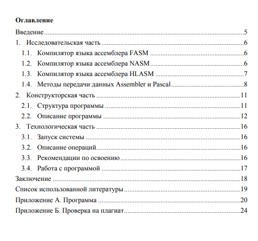 Множество систем для записи алгоритмов – языков программирования, были определены путём прогресса компьютерных технологий. Существует множество языков программирования, но мы остановимся на Ассемблере. Можно выделить существенные плюсы использования Ассемблера:  На других языках программирования не всегда можно написать приложение, которое полностью бы удовлетворяло требованиям, а иногда и полностью невозможно. На языке программирования Ассемблер возможно написать любое приложение.  Часто языки высокого уровня не могут обеспечить требуемое быстродействие, а язык Ассемблер гарантирует предельное быстродействие.  Размер приложений созданных на языках высокого уровня имеют гораздо больший размер, чем приложения, созданные на Ассемблере.  Ассемблер обращается напрямую к аппаратным средствам, что часто дает программисту преимущество и требуемый результат, а приложение на языке высокого уровня работает с аппаратными устройствами через уже существующие модули, что не позволяет что-либо изменить. Следует отметить, что язык Ассемблер появился для упрощения взаимодействия с вычислительной машиной, так как в отсутствие Ассемблера все программы писались на “машинном языке”, который представлял собой ряд чисел, несущий те или иные значения или команды. использует мнемокоды, наиболее удобные человеку для записи. В данной работе были рассмотрены: синтаксис оформления ассемблерных вставок в программу на языке высокого уровня Pascal, а так же методы передачи информации между Assembler и Pascal.