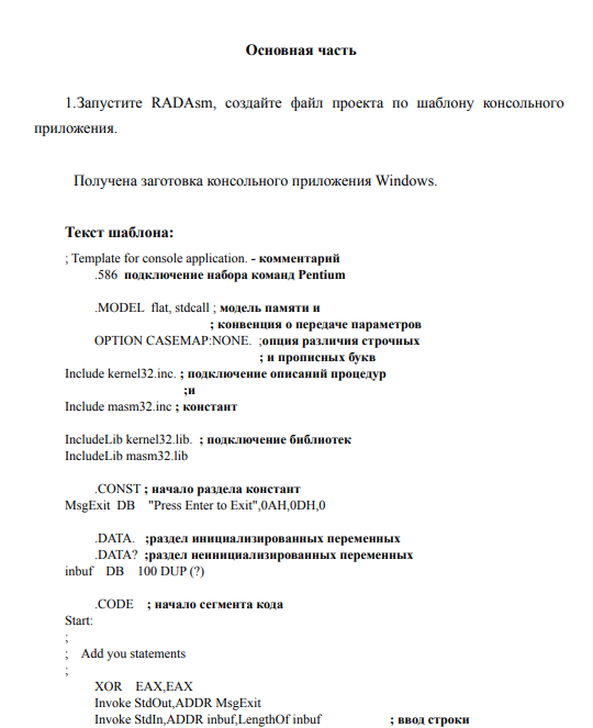 изучение процессов создания, запуска и отладки программ на ассемблере в среде программирования RADAsm с использованием 32-разрядного отладчика OlleDBG.