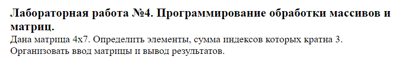 Для студентов МГТУ им. Н.Э.Баумана по предмету Машинно-зависимые языки и основы компиляцииЛабораторная работа №4. Программирование обработки массивов и матриц (NASM) - Вариант 5.23Лабораторная работа №4. Программирование обработки массивов и матриц (NASM) - Вариант 5.23