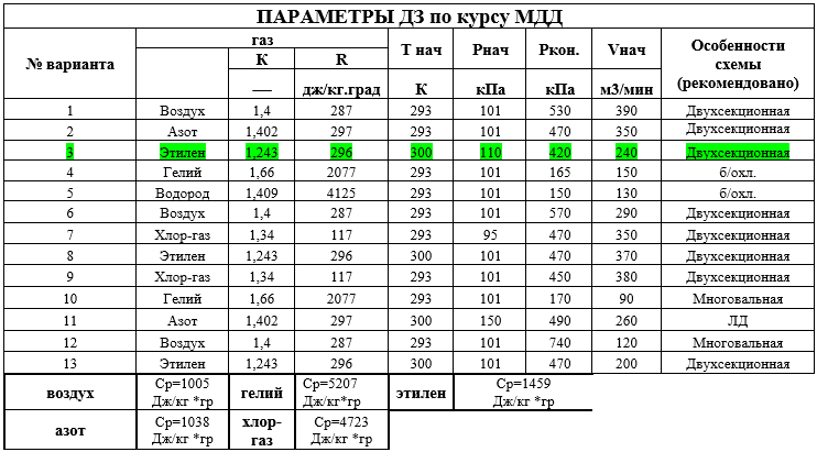 ДЗ 1: Тепловой расчет центробежного компрессора вариант 3