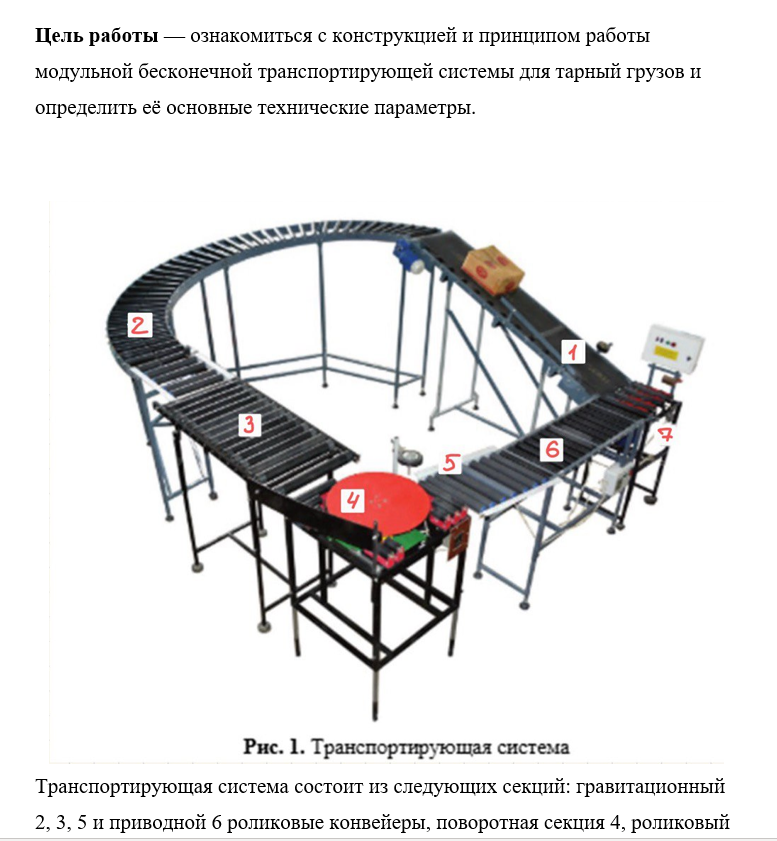 Лабораторная работа: Изучение конструкции системы транспортирующих машин для тарных грузов