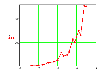 Постановка задачи: для указанного варианта исходных данных построить эмпирическую линию регрессии у по х, по виду построенной линии подобрать уравнение регрессии. Используя метод наименьших квадратов составить систему уравнений и решить ее относительно определяемых коэффициентов. Составить блок схему и программу расчета параметров модели, оценки адекватности полученного уравнения регрессии, экспериментальных данных, а также расчета коэффициента парной корреляции (корреляционного отношения). Провести расчет параметров регрессионной модели, оценить адекватность и тесноту связи, сделать вывод о пригодности модели к использованию.