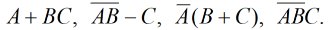 Эксперимент состоит в том, что внутри прямоугольника W, изображённого на рисунке, случайным образом выбирается точка. События A, B и C состоят, соответственно, в попадании выбранной точки внутрь кругов A, B и C. Изобразить области, попадание в которые соответствует осуществлению событий: