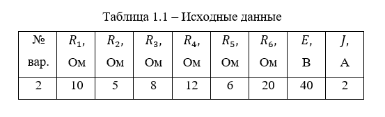 1. Расчет токов в ветвях по законам Кирхгофа.