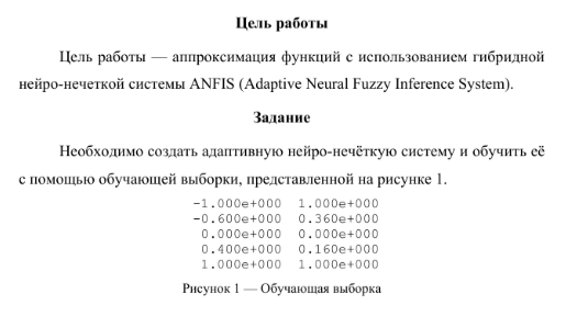 Цель работы — аппроксимация функций с использованием гибридной нейро-нечеткой системы ANFIS (Adaptive Neural Fuzzy Inference System).
