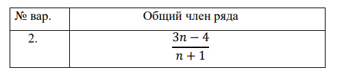 Задание 5. Рассчитайте значение восьмого члена ряда и сумму первых десяти членов ряда, общий член которого приведен в таблице 3.9.