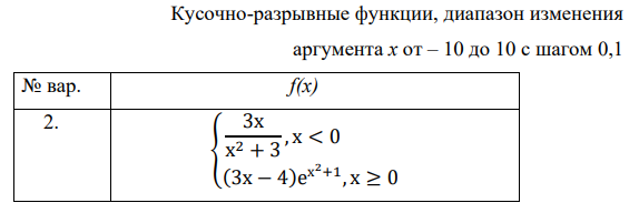 Задание 1. Согласно своему варианту задания (таблица 2.3) определите функцию f(x) на интервале x[2; 12] с шагом 0.5, вычислить ее значение при x=2.9 и построить таблицу значений и график функции.