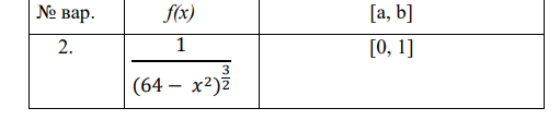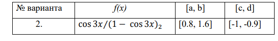 Задание 4. Вычислить определенный интеграл от функции f(x), приведенной в таблице 3.8 в заданных пределах [a, b].