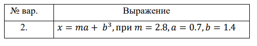 Задание 1.2. Согласно своему варианту рассчитать значение выражения, приведенного в таблице 1.2, при заданных значениях переменных.