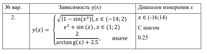 Задание 2.2. Согласно своему варианту задания (таблица 2.3) определите функцию f(x) на интервале x[2; 12] с шагом 0.5, вычислить ее значение при x=2.9 и построить таблицу значений и график функции.