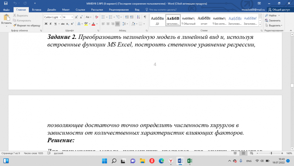 Курсовая работа: Задание №5 (Корреляционно-регрессионный анализ.) Вариант 6. Задача оценена на 5, предоставляю материал в Excel и Word.