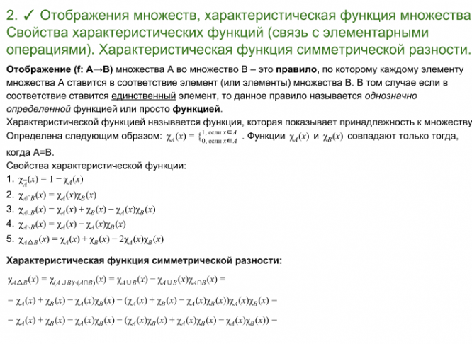 Характеристики ответов (шпаргалок) к экзамену