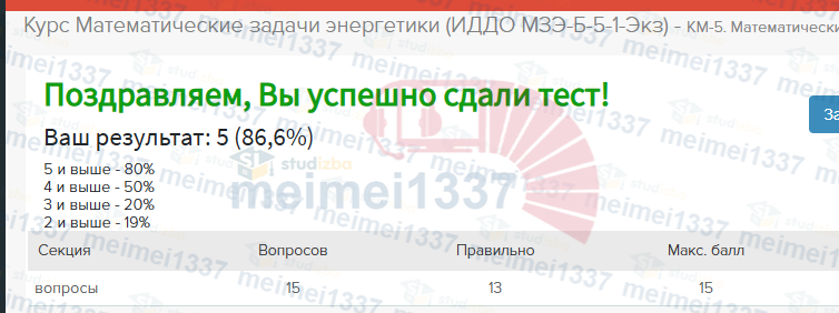 Главная » Учебные материалы » Математические задачи энергетики » Ответы » ИДДО НИУ «МЭИ» » Номер КМ-5 » К заданиям » Помощь со сдачей - КМ-5. Математические задачи энергетики. Тестирование