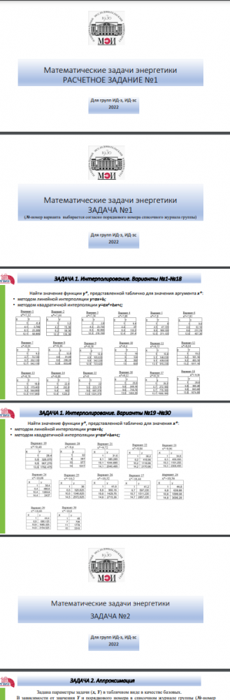 Для студентов ИДДО НИУ «МЭИ» по предмету Математические задачи энергетикиКМ-1. Приближение функций Задание № 1. Письменная работа - Вариант 1КМ-1. Приближение функций Задание № 1. Письменная работа - Вариант 1