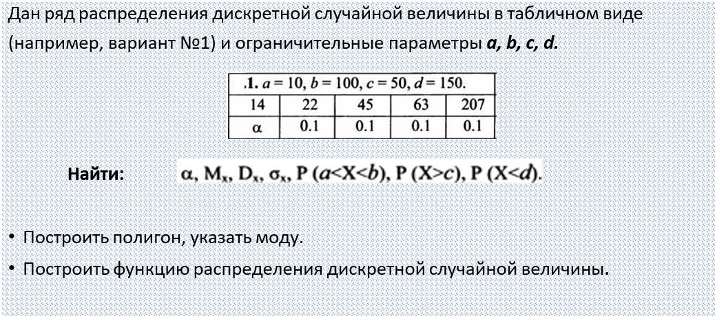 Задача №1 по теме «Числовые характеристики дискретной случайной величины»
