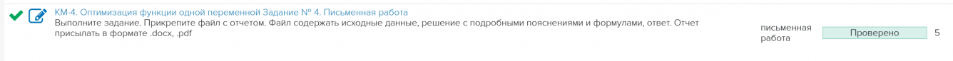 Помогу вам сдать в кратчайший срок - КМ-4. Оптимизация функции одной переменной Задание № 4. Письменная работа