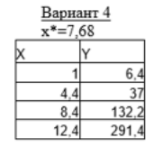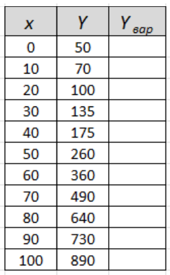 Задана параметры задачи (x, Y) в табличном виде в качестве базовых. В зависимости от значения Y и номера варианта(№), выданного СДО Прометей, Yвар определяем по формуле: