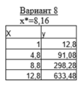 Найти значение функции y* , представленной таблично для значения аргумента х*: