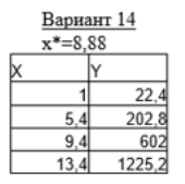Найти значение функции y* , представленной таблично для значения аргумента х*: