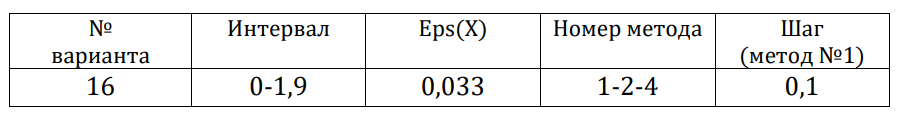 2) Точность нахождения 𝑥_ задана в виде Eps(X) (Табл.)
