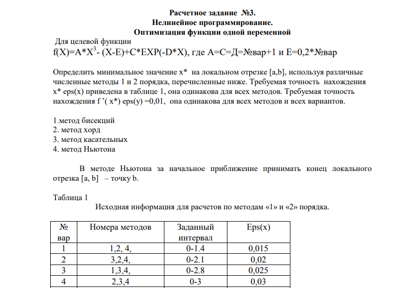 Для студентов ИДДО НИУ «МЭИ» по предмету Математические задачи энергетики возобновляемых источников энергииРасчетное задание №3 Нелинейное программирование Оптимизация функции одной переменной(4 вариант) Расчетное задание №3 Нелинейное программирование Оптимизация функции одной переменной(4 вариант)