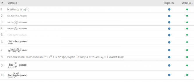 Для студентов ИДДО НИУ «МЭИ» по предмету Математический анализТест 2. Производные. Правило Лопиталя. Формула Тейлора (ПЯ)Тест 2. Производные. Правило Лопиталя. Формула Тейлора (ПЯ)