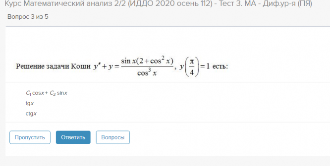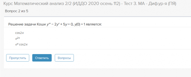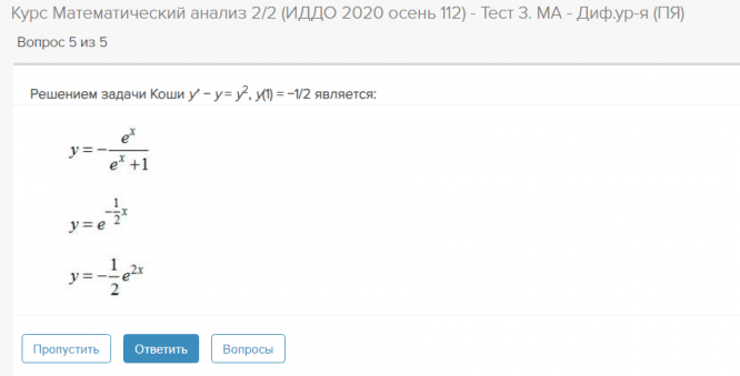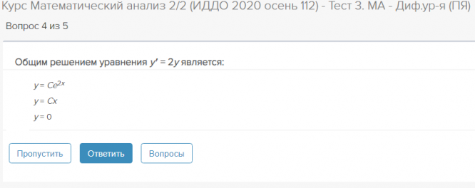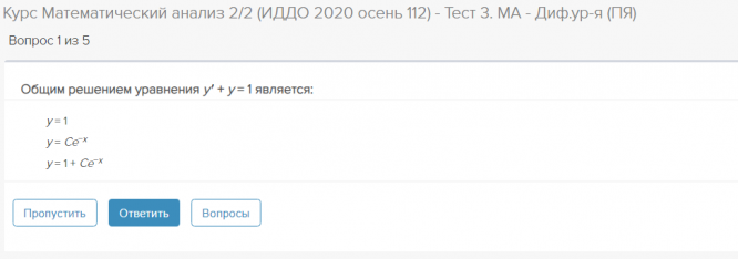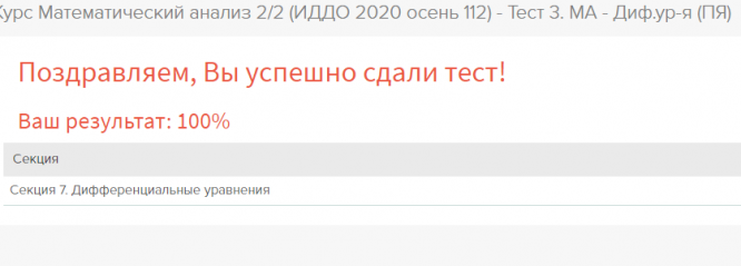 Для студентов ИДДО НИУ «МЭИ» по предмету Математический анализТест 3. МА - Диф.ур-я (ПЯ) 100%Тест 3. МА - Диф.ур-я (ПЯ) 100%