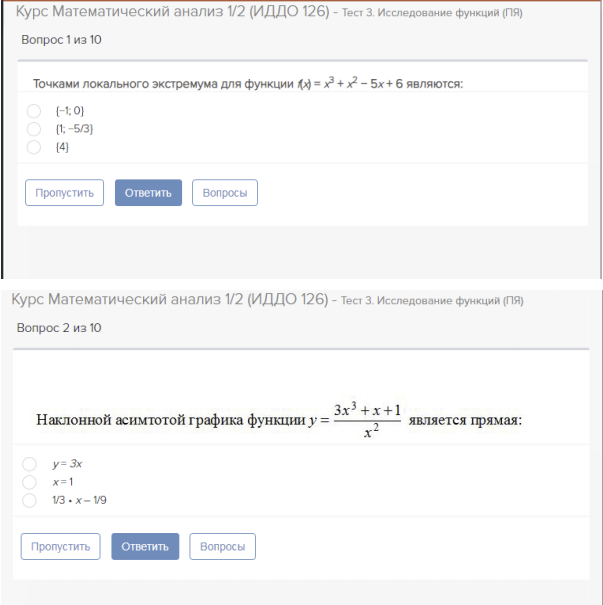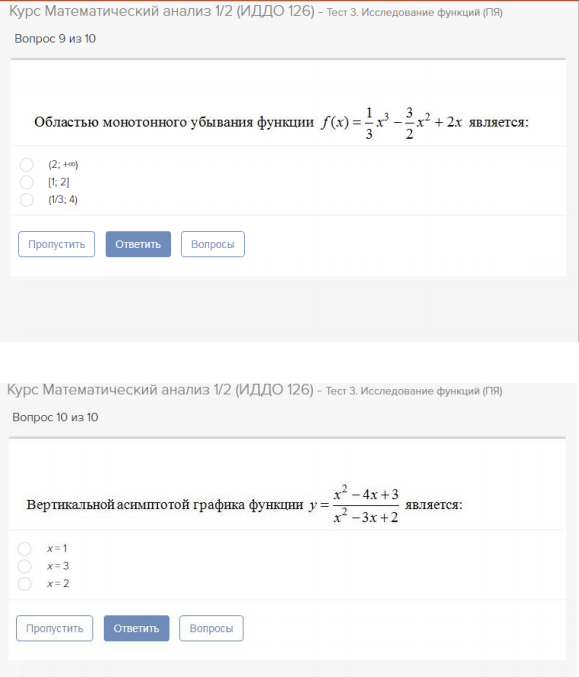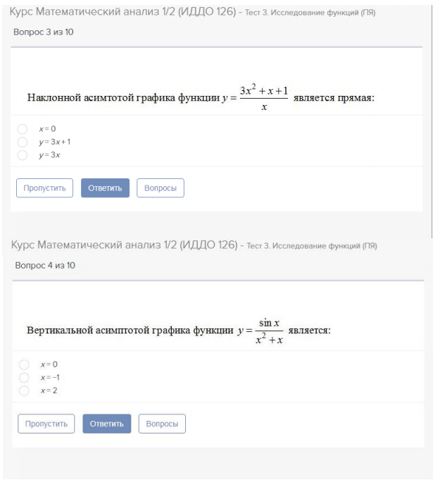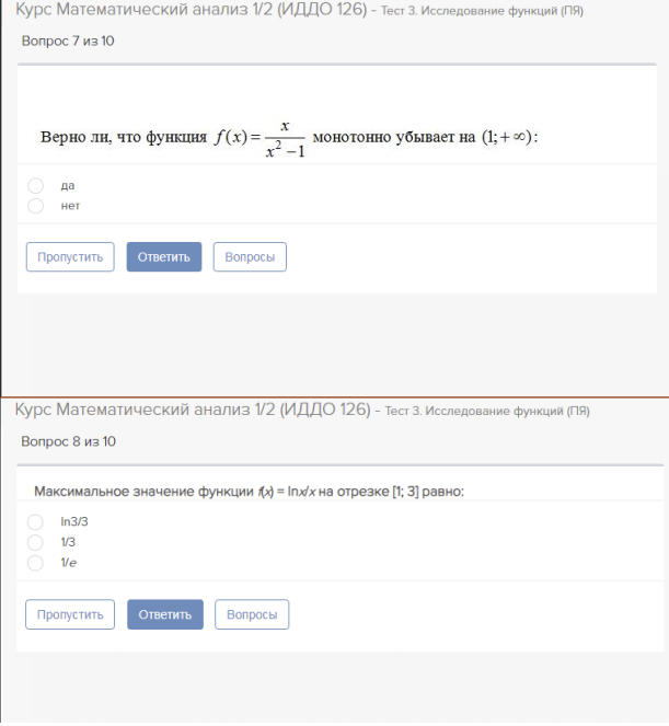 Для студентов ИДДО НИУ «МЭИ» по предмету Математический анализМатематический анализ 1/2 (ИДДО 126) - Тест 3. Исследование функций (ПЯ)-100%Математический анализ 1/2 (ИДДО 126) - Тест 3. Исследование функций (ПЯ)-100%