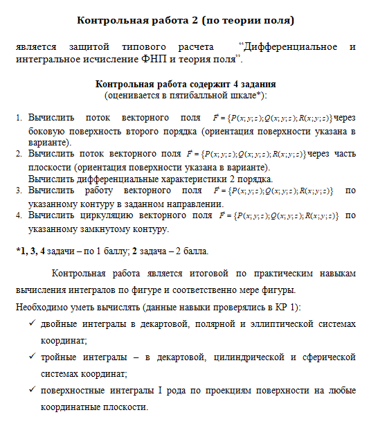 Для студентов НГТУ по предмету Математический анализКР №2 - Теория поляКР №2 - Теория поля