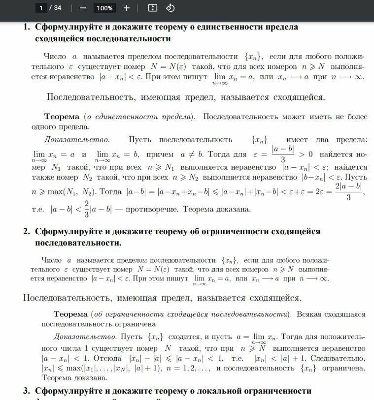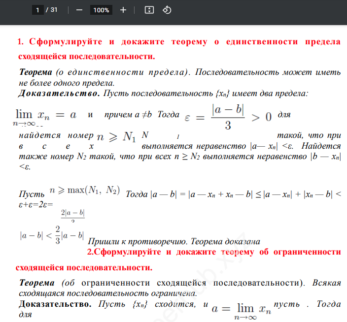 1. Сформулируйте и докажите теорему о единственности предела сходящейся последовательности.2.Сформулируйте и докажите теорему об ограниченности сходящейся последовательности.