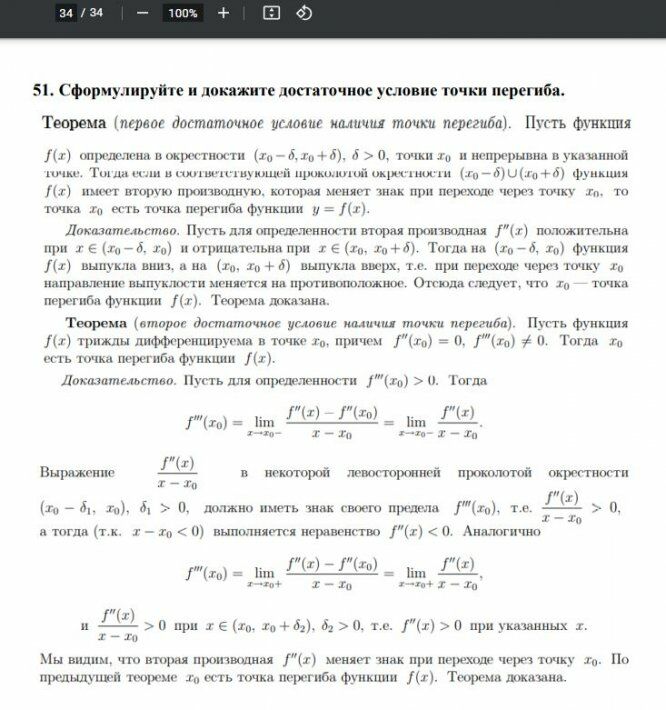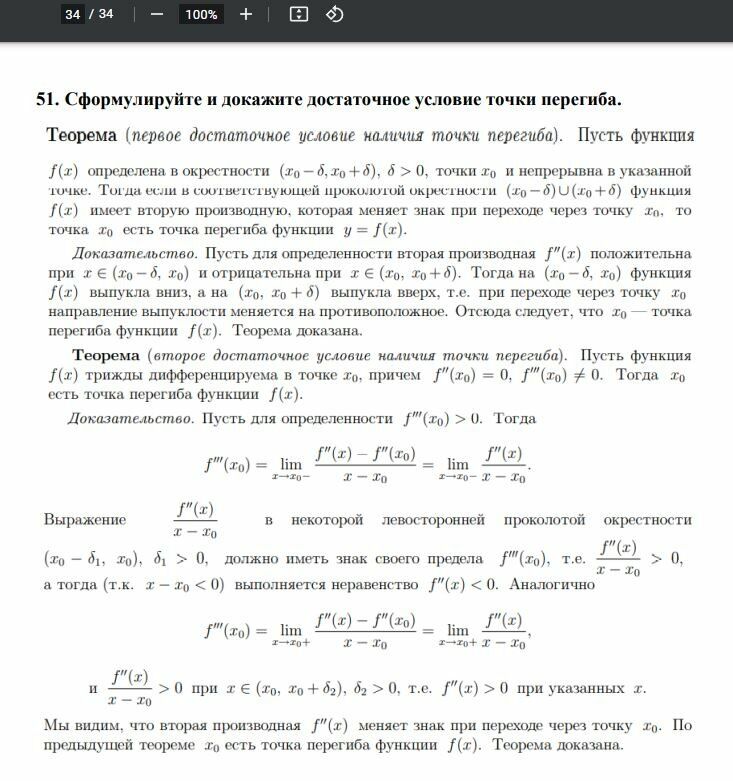 51. Сформулируйте и докажите достаточное условие точки перегиба.
