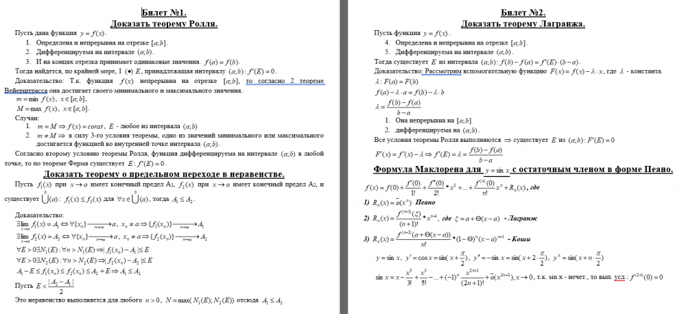 матан, математический анализ, МГТУ им. Баумана, МГТУ, bmstu, ответ на терии, решение задач, теорема Ролля, теорема о предельном переходе в неравенстве, теорема Лагранжа, Формула Маклорена, первое достаточное условие экстремума функции, теорему о связи функции, её предела и бесконечно малой, второе достаточное условие экстремума, уравнение наклонной асимптоты, условие возрастания дифференцируемой функции, Предел числовой последовательности, признак сходимости монотонной последовательности, теорема оединственности предела.