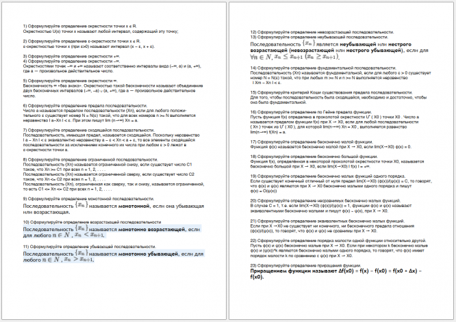 Главная » Учебные материалы » Математический анализ » Ответы (шпаргалки) » МГТУ им. Н.Э.Баумана » 1 семестр » К контрольной работе » Подготовка к рубежному контролю (Пределы и непрерывность функций)