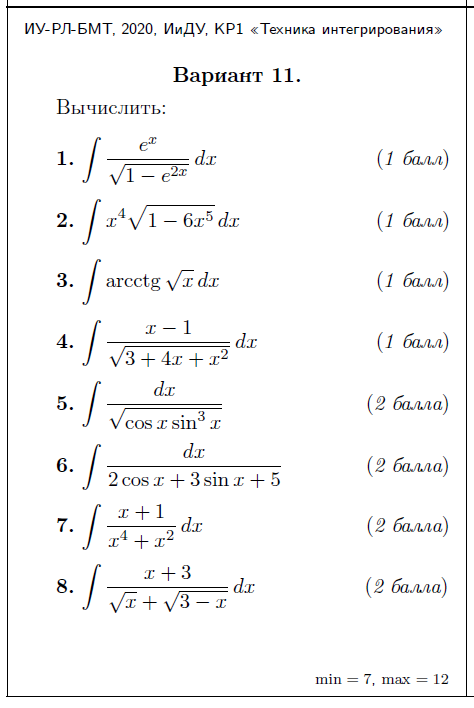 Ответы к контрольной работе 1: Техника интегрирования вариант 11