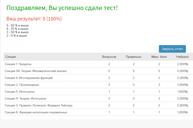 Для студентов ИДДО НИУ «МЭИ» по предмету Математический анализИтоговый тест 2/2 100%Итоговый тест 2/2 100%