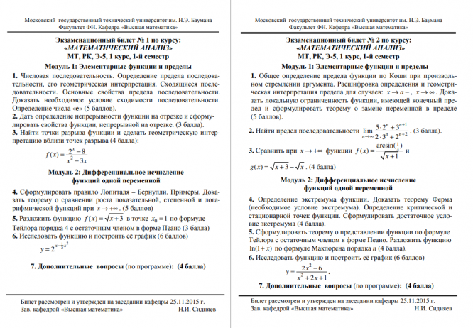 Для студентов МГТУ им. Н.Э.Баумана по предмету Математический анализБилеты к экзамену Мат Анализ (2015 год)Билеты к экзамену Мат Анализ (2015 год)