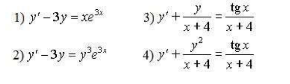 Даны дифференциальные уравнения. Укажите среди них линейные уравнения ![]()