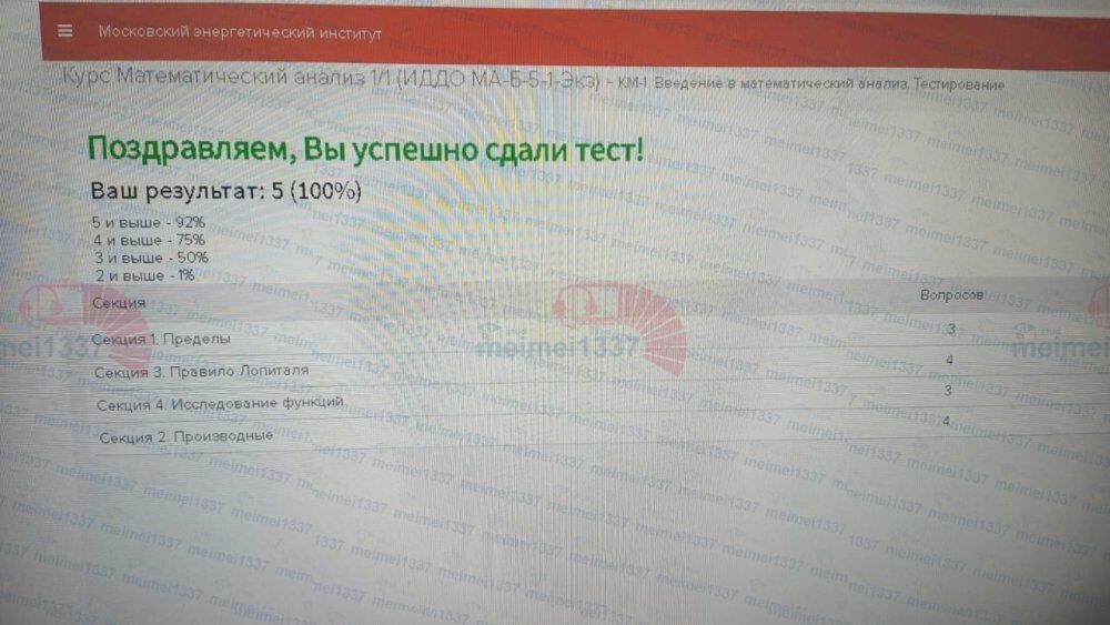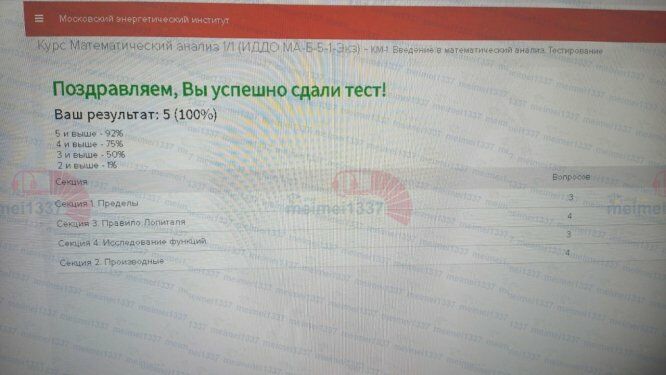 Для студентов ИДДО НИУ «МЭИ» по предмету Математический анализКМ-1. Введение в математический анализ. Тестирование - 100%КМ-1. Введение в математический анализ. Тестирование - 100%