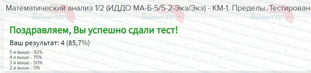 Для студентов ИДДО НИУ «МЭИ» по предмету Математический анализКМ-1. Пределы. Тестирование - 85.7%КМ-1. Пределы. Тестирование - 85.7%